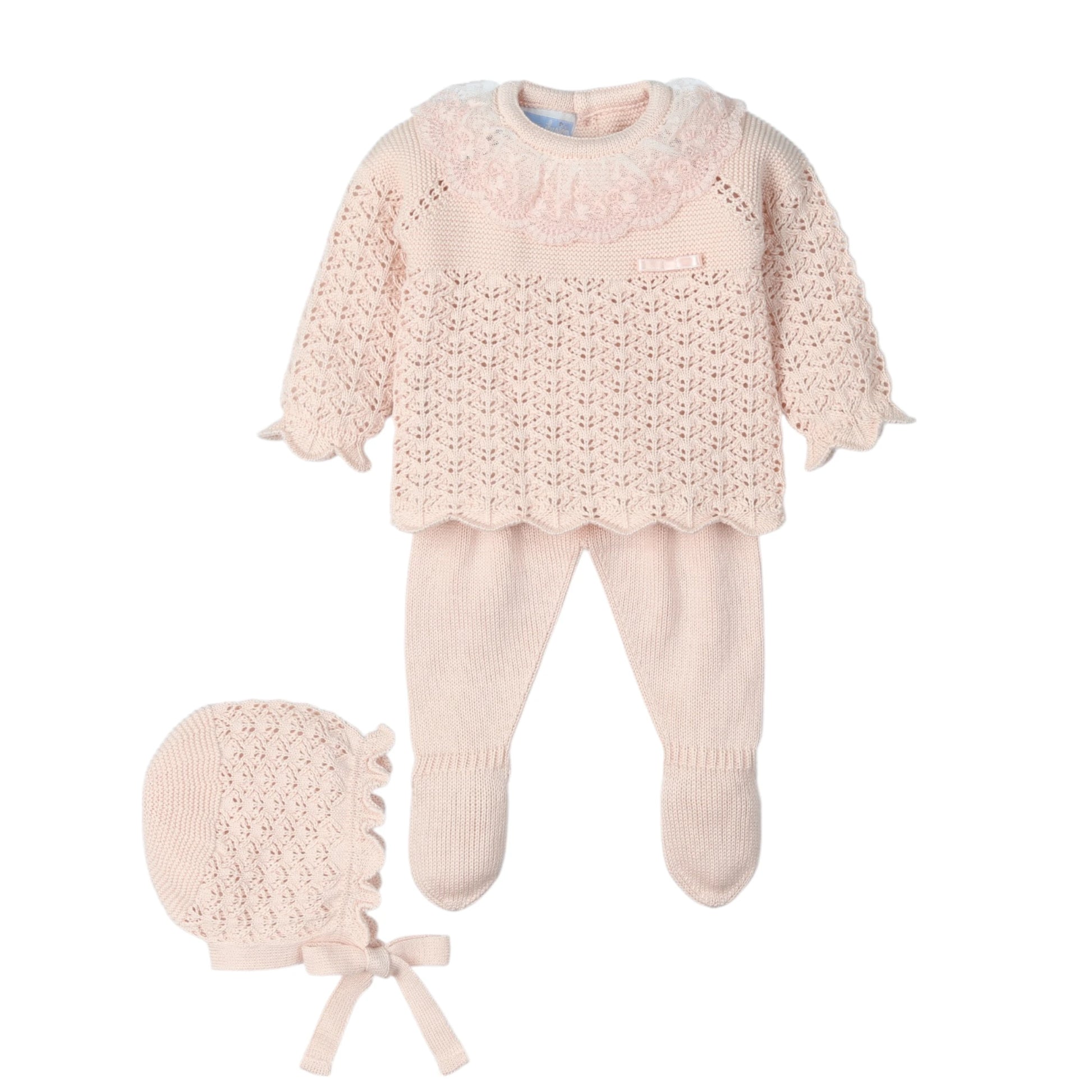 Conjunto bebé 3pzas jubón, polaina y capota 'Tul bordado'