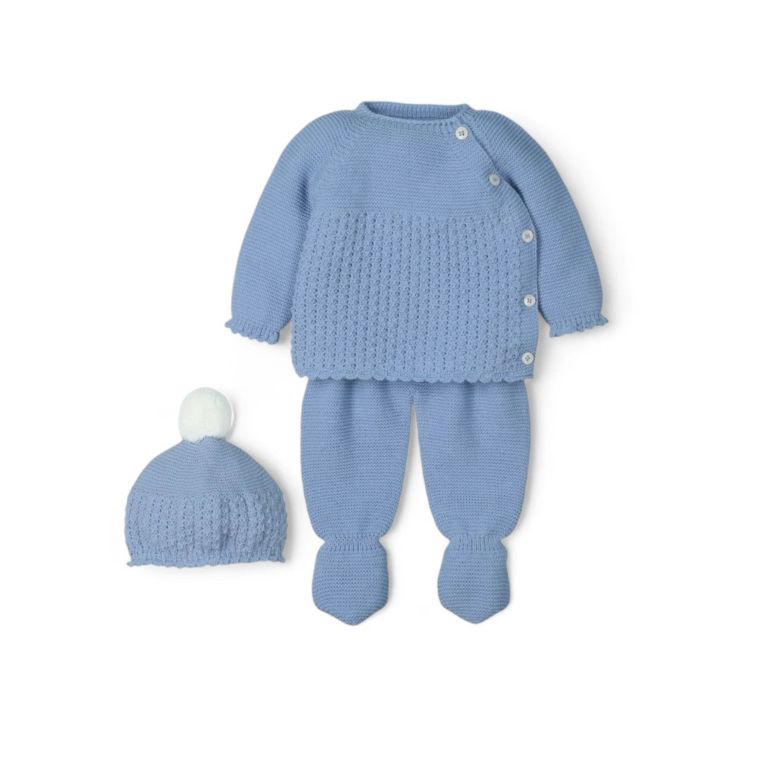Este conjunto compuesto de jersey, polaina y capota es perfecto como primera puesta por su comodidad para vestir a tu bebé en sus primeros días, además su acabado tan dulce hace que sea un conjunto ideal para un día tan especial. Las tres prendas son un básico para combinar con otras prendas y darles un mayor uso vistiendo a tu bebé siempre con prendas únicas y funcionales.