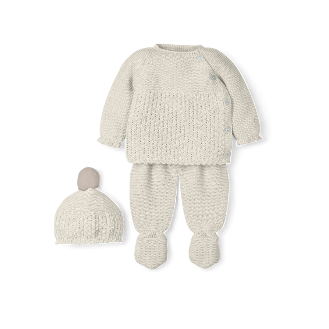 Conjunto de 3 piezas jubón, polaina y capota con pompón "Enternecer"