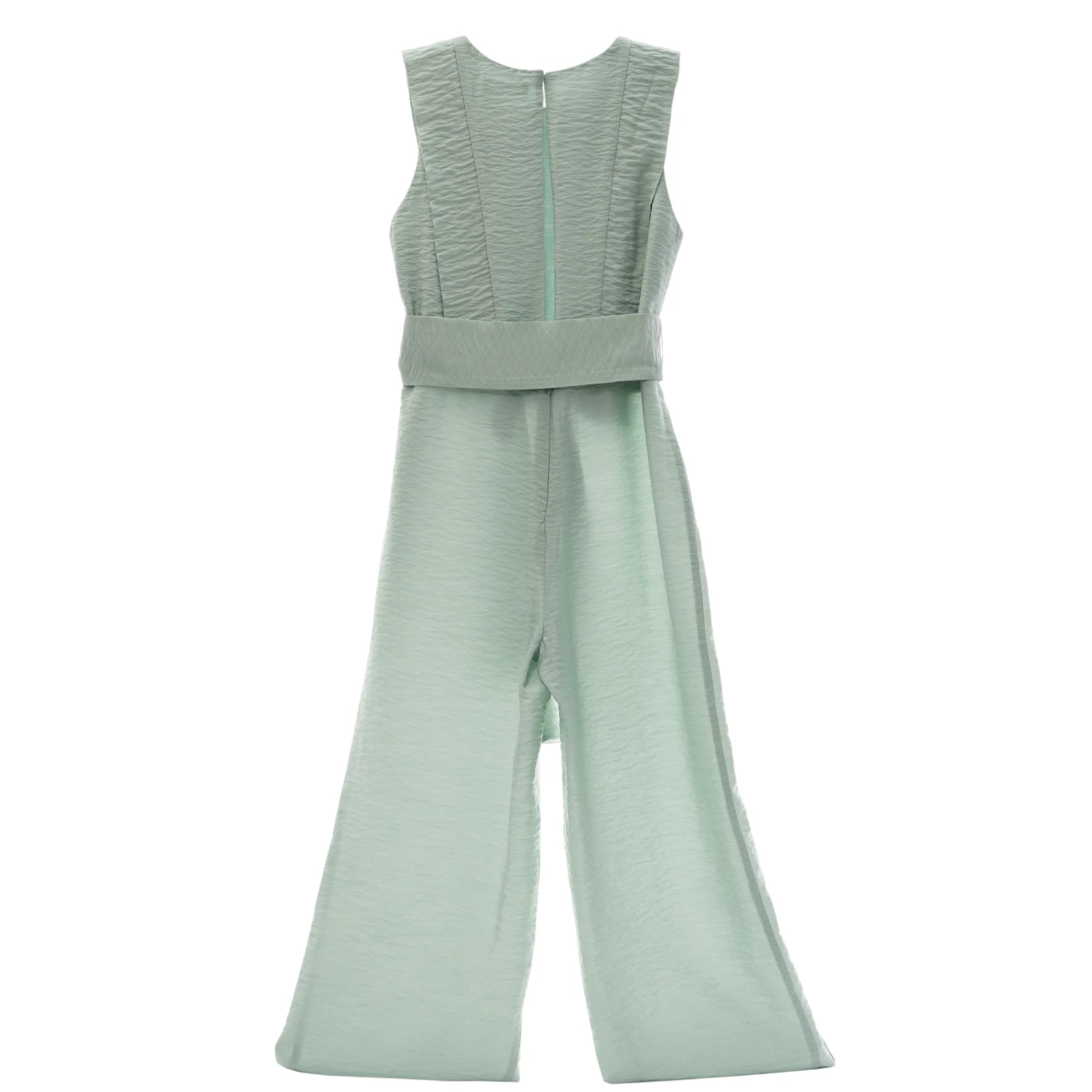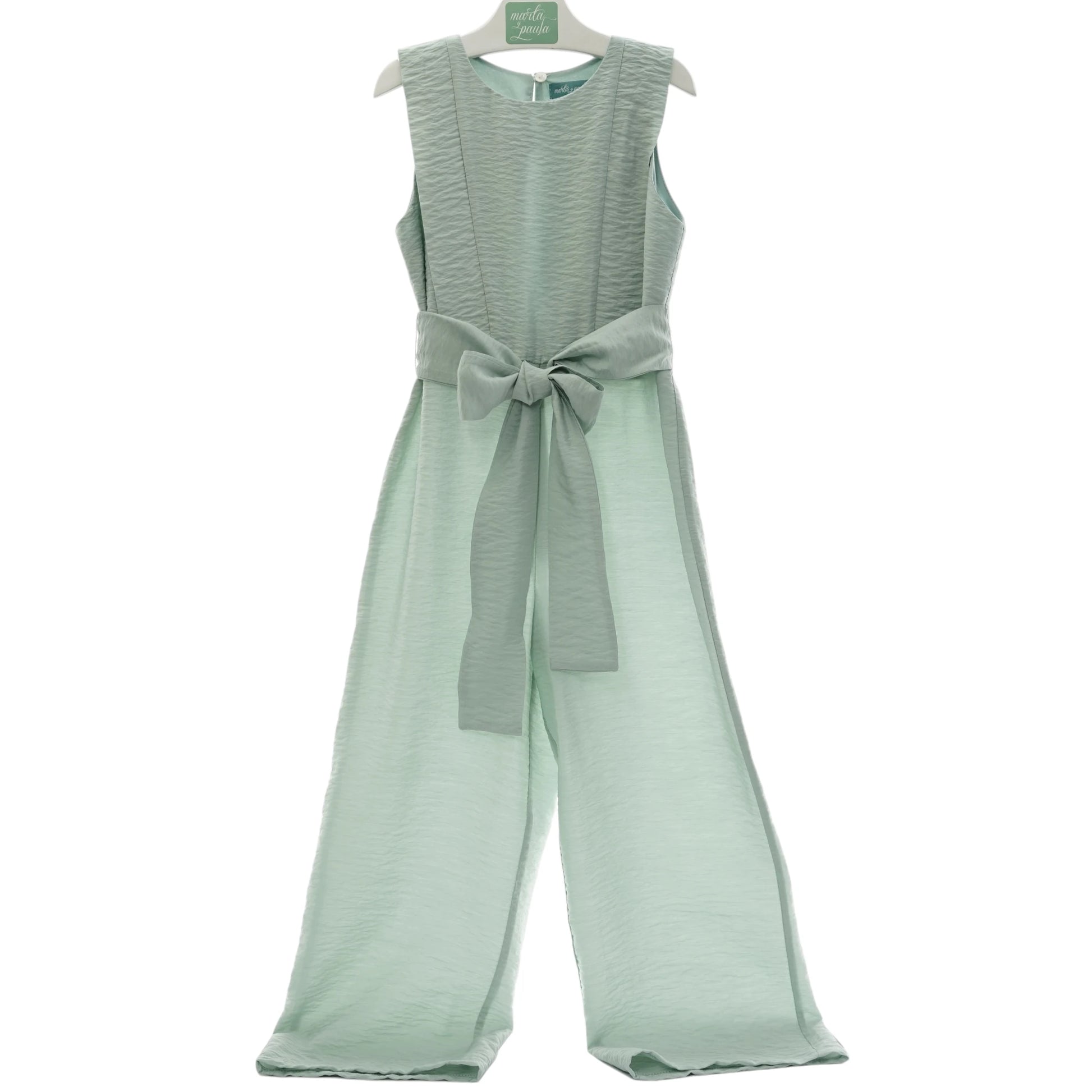 Este mono largo es la combinación perfecta de comodidad y sofisticación. Su diseño sin mangas y su tejido ligero lo hacen ideal para cualquier evento especial. El detalle del lazo en la cintura resalta la silueta y añade un toque de dulzura y distinción.